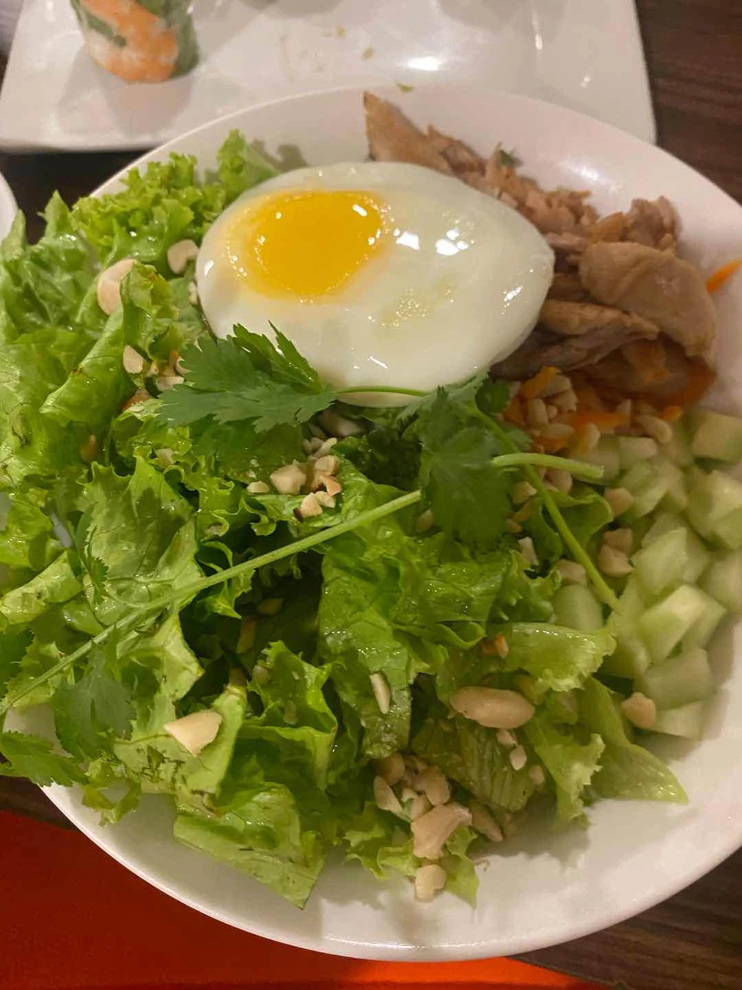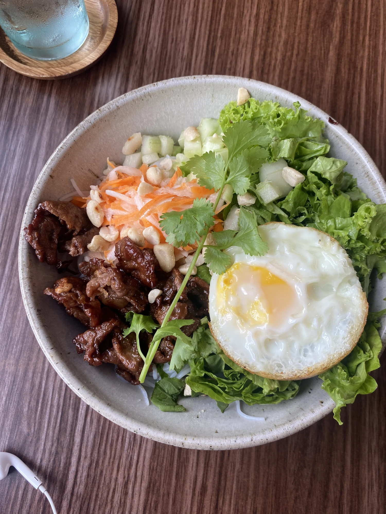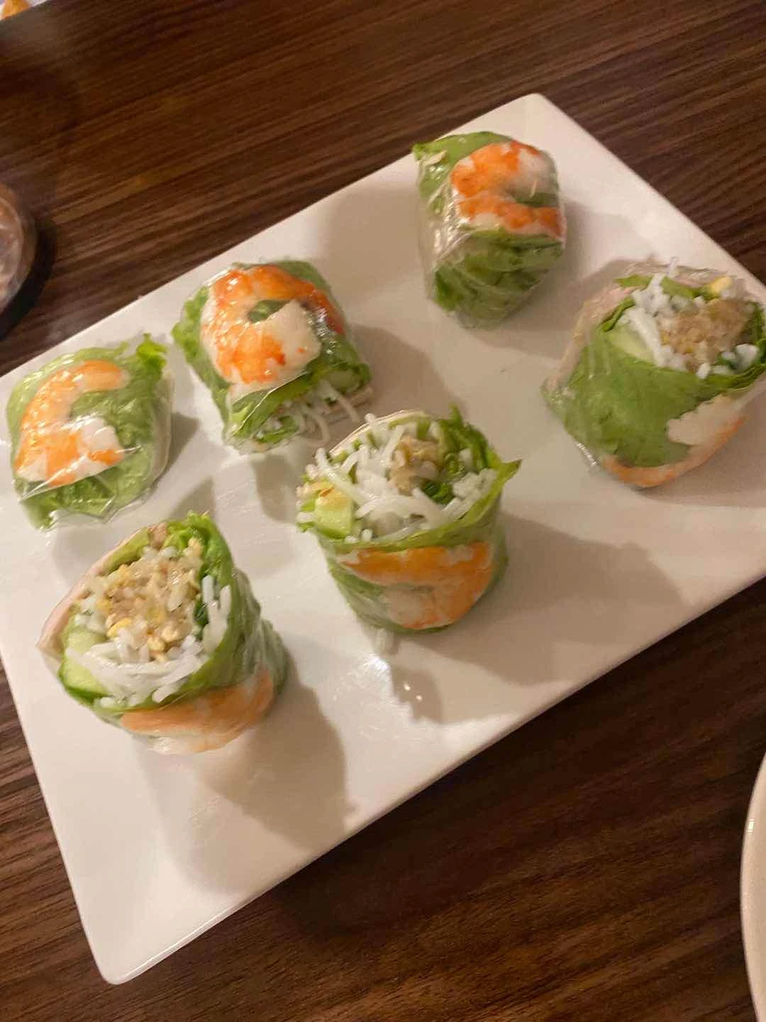 Fried pork rolls, vermicelli bowl, and iced viet coffee