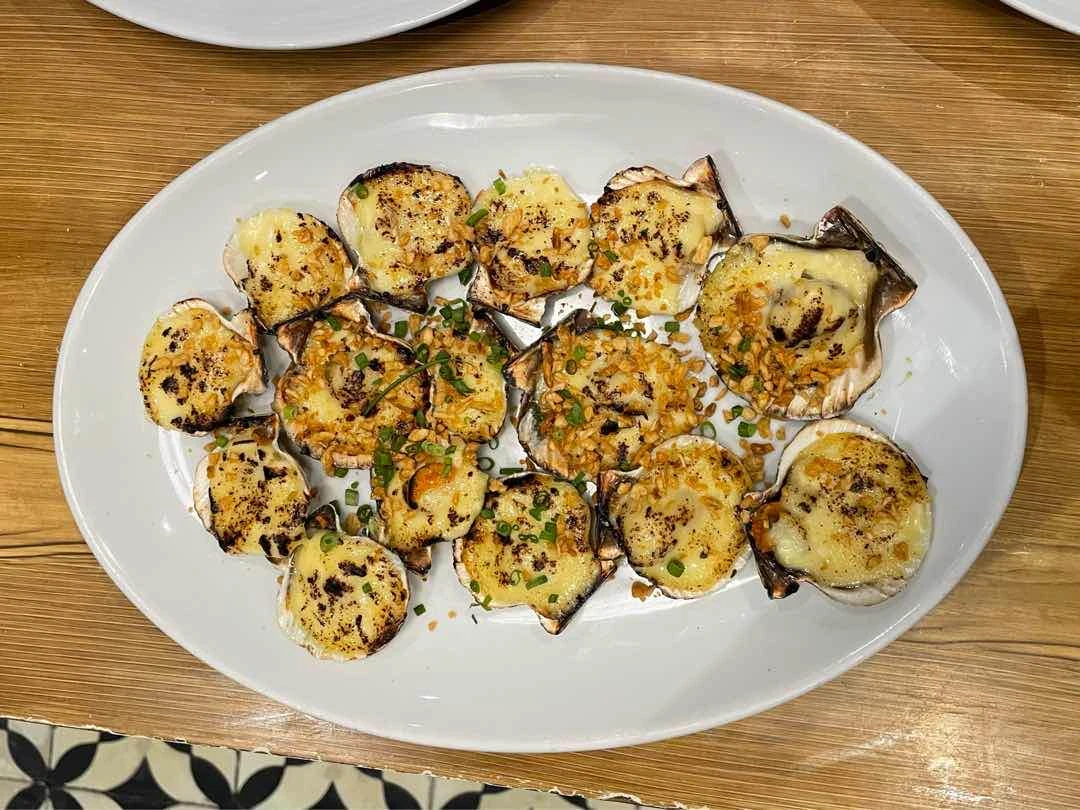 chili baby squid, chicken inasal sisig rice bowl, kare kare rice bowl